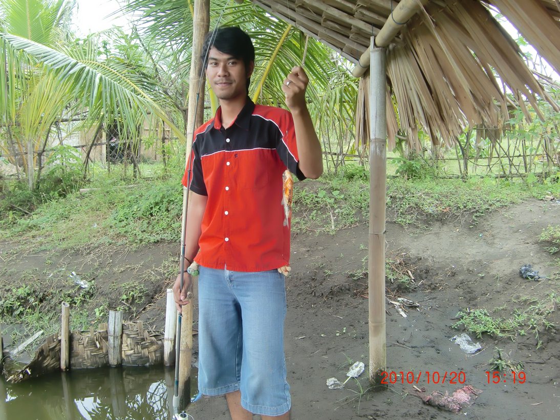 Bangun seperti biasa jam 9 pagi, langsung mandi. niate nyong sih arep langsung bukak warnet, eh....esih mati lampu. Nyong takon lilike jere anu ana pemadaman, jere anu lg ana petugas PLN arep nutuih wit2 sing wis nutupi kabel listrik. Tanpa pikir panjang, dan pikirane inyong tertuju pada mancing..........!!he....Langsung ajah nyong sms ngajakin dia mancing kurang lebih kaya gini nih sms se nyong " A, yuh pada mancing" eh iya sebutan "A" untuk si dia, he..... , eh di bls sms se nyong,..." Kapan Mas", tek balesi maning " siki yuh ", eh si dia bls lg " Yuh, ngeneh ya?", wehhh tanpa pikir panjag langsung ajah nyong njiot montor langsung mangkat....